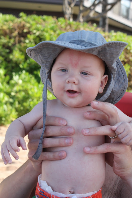The one disappointment was that in typical boy fashion Grady has already decided that laying out is not for him. We tried putting him in tents, under umbrellas, sunglasses, hats, you name it. Who would have thought that my baby who doesn't do much more than lie there on a blanket at home would refuse to lie on the beach on a towel in one of the most beautiful places in the world? So instead he spent time sitting with us, going for walks, or going "swimming" in the ocean. We cannot really complain about those things, they are pretty awesome in their own right.